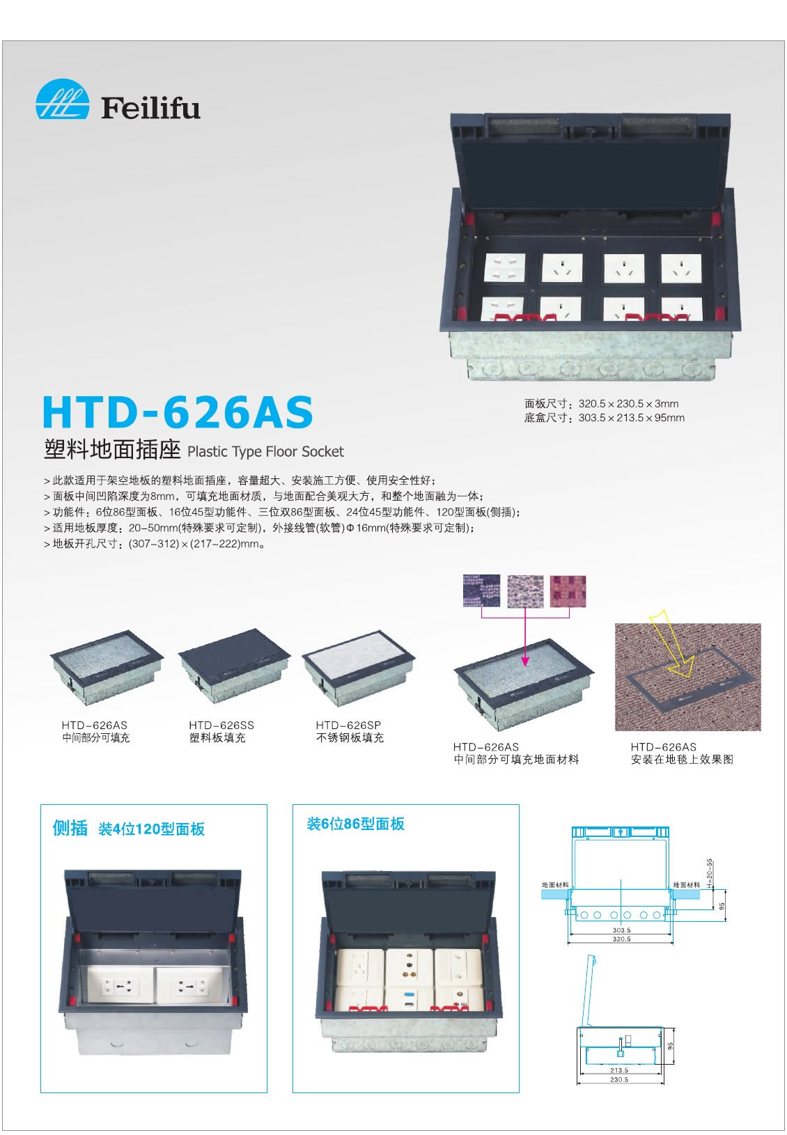 底盒(hé)尺寸:303.5×213.5×70~95mm